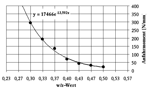 Ab einem w/z-Wert kleiner 0,433 stiegen diese überproportional (siehe Diagramm 5) an.